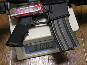 結果的に本体+4倍スコープ+ミニバッテリー+マガジンフル装弾の状態で3kgを切り2960g。