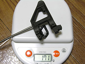 で結果、何とか装着できるようになった。 170gの軽量化達成。あとは、フロントポストとチャージングハンドルのアルミ化。これで約100gは軽量化できるはず。