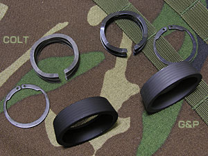 デルタリングもCOLT製を購入した。スプリングとスナップリングの色はCOLTの方が艶消しでグレー。デルタリングはG&Pはアルマイトの真っ黒だったのをインディのパーカーシールで塗装してしまったが、COLT製もほぼ真っ黒だった。