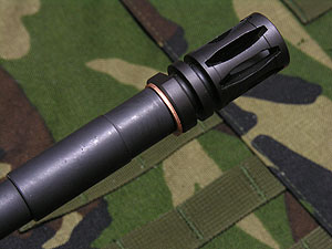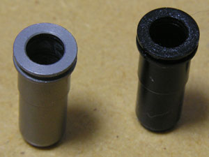 ちょっと銀色すぎるか? ただ、実物もシルバーのパッキンを多く見かける。発射ガスで汚れる部分なので、塗料などで「汚し」などのウェザリングを施すと良い感じになるかもしれない。ちなみに銅製のパッキンも付けてみたが、ちょっと微妙だったのでアルミ製で落ち着いた。