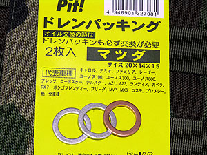 バイクや自動車用のドレンパッキンを利用してドレスアップを試みた。サイズは外径20mm×内径14mm×厚み1.5mmのマツダ車用がアルミのシルバー2枚入りで252円。外車用の同サイズで銅製のものが1枚63円と非常にリーズナブルな価格。オートバックスなどで取り扱っている。