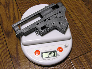 ちなみにマルイ純正Ver.II(A2系)メカボックスの重量は270g。これをアルミで作ったら、140gは軽量化できるはず。