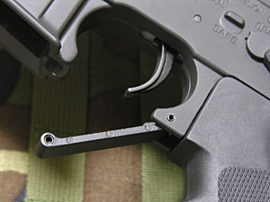 トリガーガードは亜鉛ダイキャストで、成形痕が残っていてちょっと微妙。セレクターの感触はノーマルより重いがクリック感は適度にある。あまりピシッとした感覚ではない。