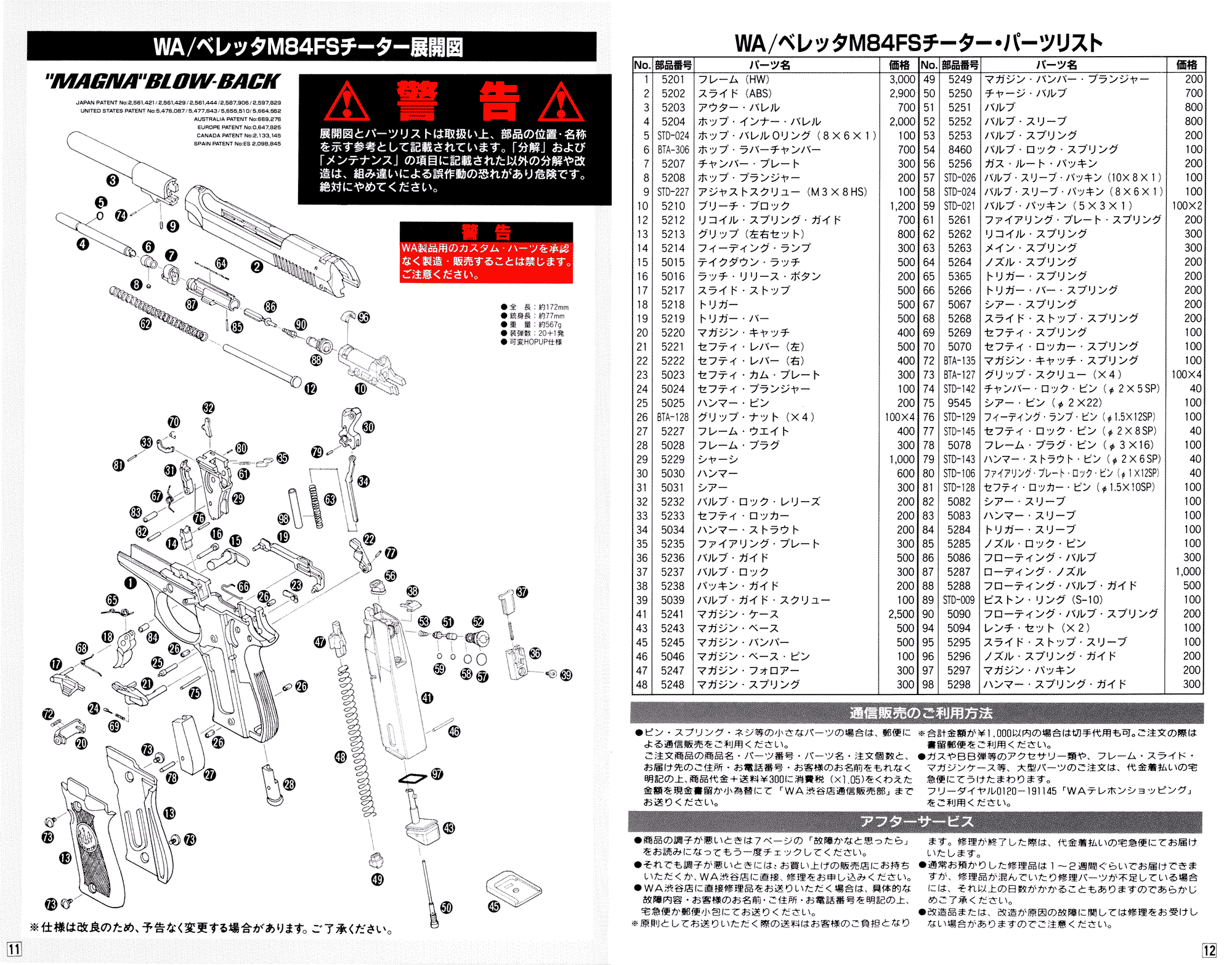 WA ベレッタ M84FS スペック