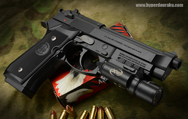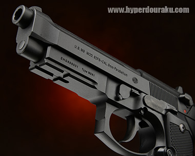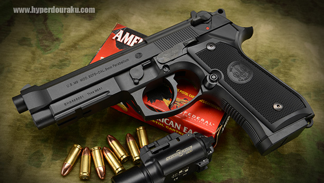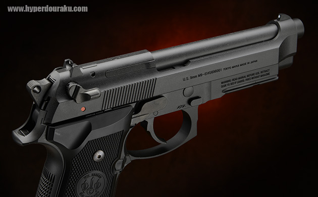 実銃のベレッタM9は米軍が1985年に制式採用したオートマチックピストルだ。それまで制式となっていたコルトM1911A1に代わりトライアルを勝ち抜き米全軍の制式拳銃となった。口径は9mm×19パラベラム弾を使用する。このM9ピストルはイタリアのベレッタ社が開発したM92Fがベースであることもよく知られている。制式採用されるとともにM92Fは映画でも多く登場し、「ダイハード」や「リーサルウエポン」「男達の挽歌」など、主人公達が使用する拳銃として世界的にも有名になった。