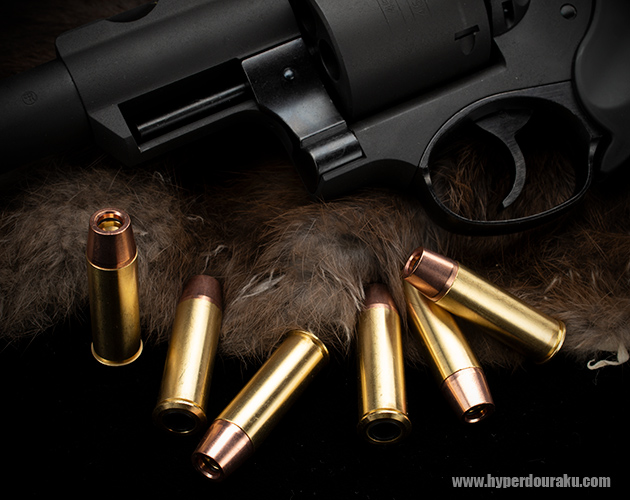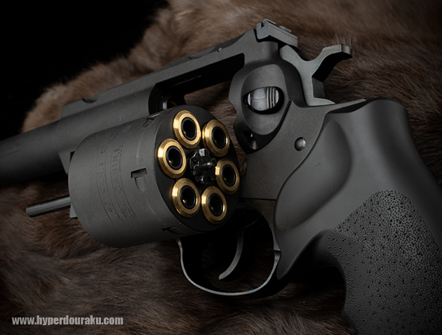 本モデルの魅力はやはりこの.454カスール弾を撃てるマグナムリボルバーのスタイリング、そして重量感たっぷりのHW樹脂、金属カートで操作を楽しむところだろう。そういう意味ではモデルガン寄りのガスガンといえる。他のモデルでは味わえないロマンを感じる一丁となっている。