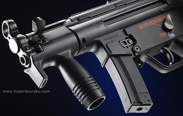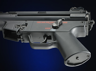フルサイズのMP5とは違いレシーバーはモナカ構造ではなく一体型で、マガジンハウジング前面の開きもない。