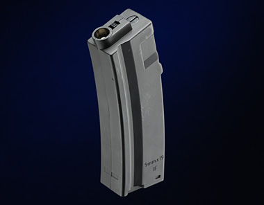 モナカ構造のプラ製で6mmBB弾を28発装填できる。中に錘が入っており、見た目によらず重い。重量は151g。