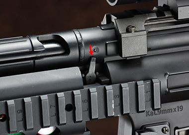 MP5の基本設計は1992年で、当時まだホップアップ機能はなく、93年のSDシリーズからホップアップが標準化された。この名残でどうしても後付け感が漂う位置にレバーが付いている。操作中に狂いやすいのでレバーを短くカットするというのもひとつの方法だ。