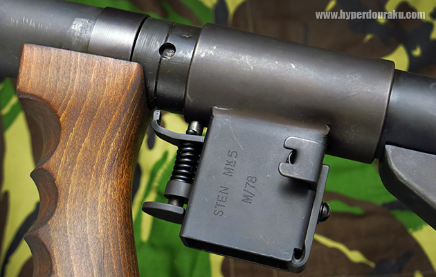 ストックはMK2のパイプと板のバットプレートと違い、MK5はライフルストックを採用しています。