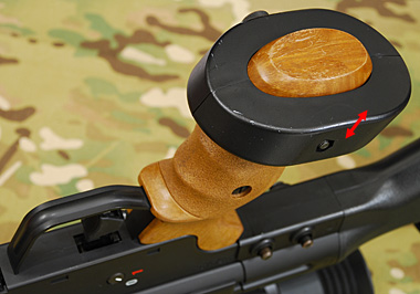 PSG-1独自のグリップ形状。素材は木目調プリントのプラスチック製。