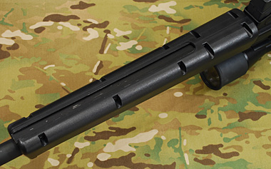 ハンドガードの下面には亜鉛ダイキャストのレールが埋め込まれていて剛性が高まっているほか、オプションパーツのバイポッドを装着できる。