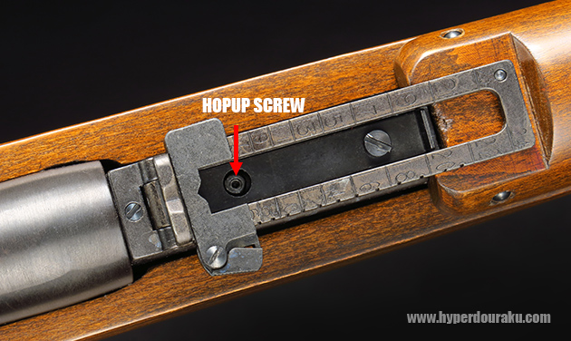 ホップアップの調整はリアサイト部にある六角ネジにて行います。外観を損ねず、よい配置です。