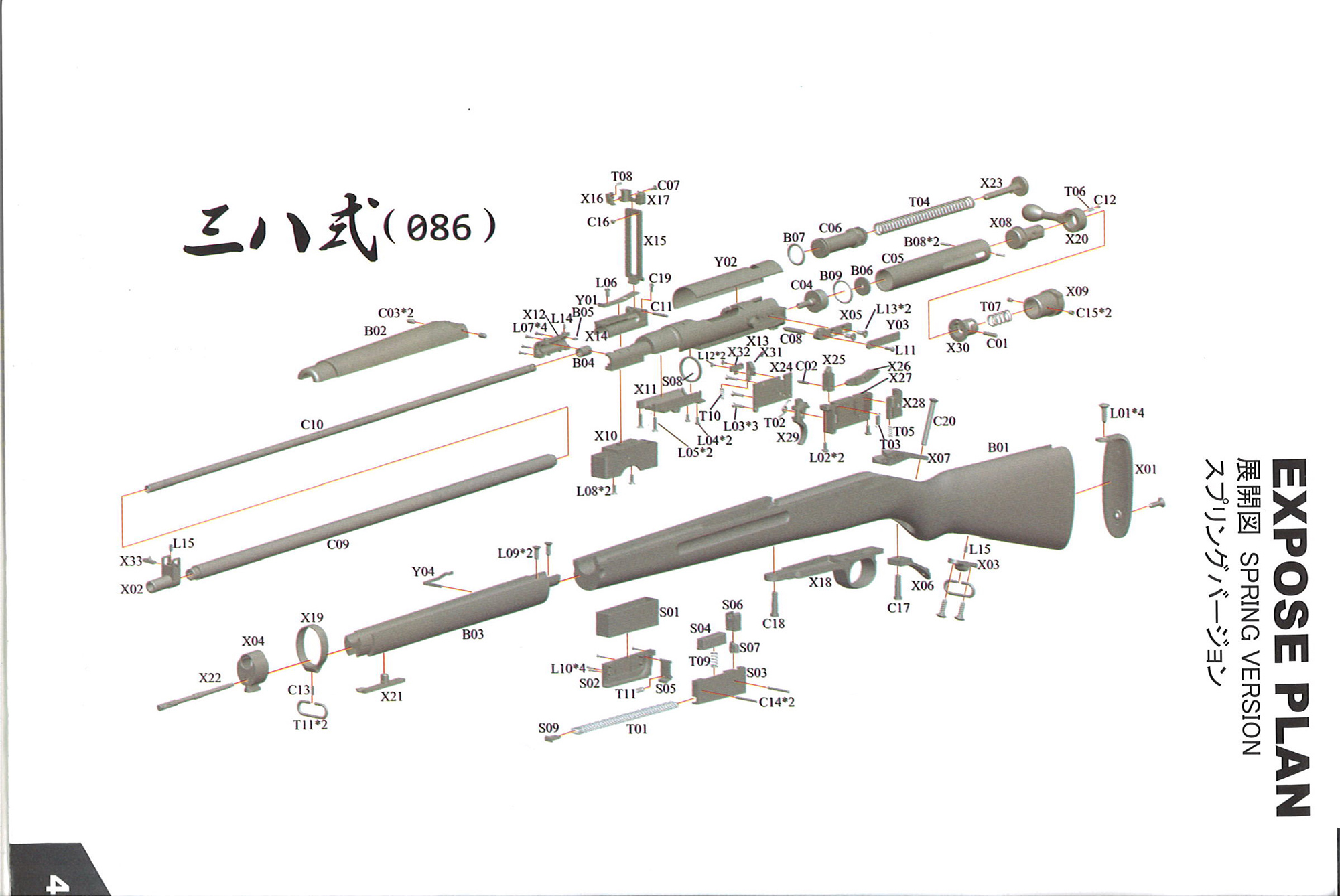 パッケージはS&Tのロゴが薄くで入った共通のもので、三八式歩兵銃のステッカーが貼ってあります。同封されているのものは本体、マガジン、取説のみです。