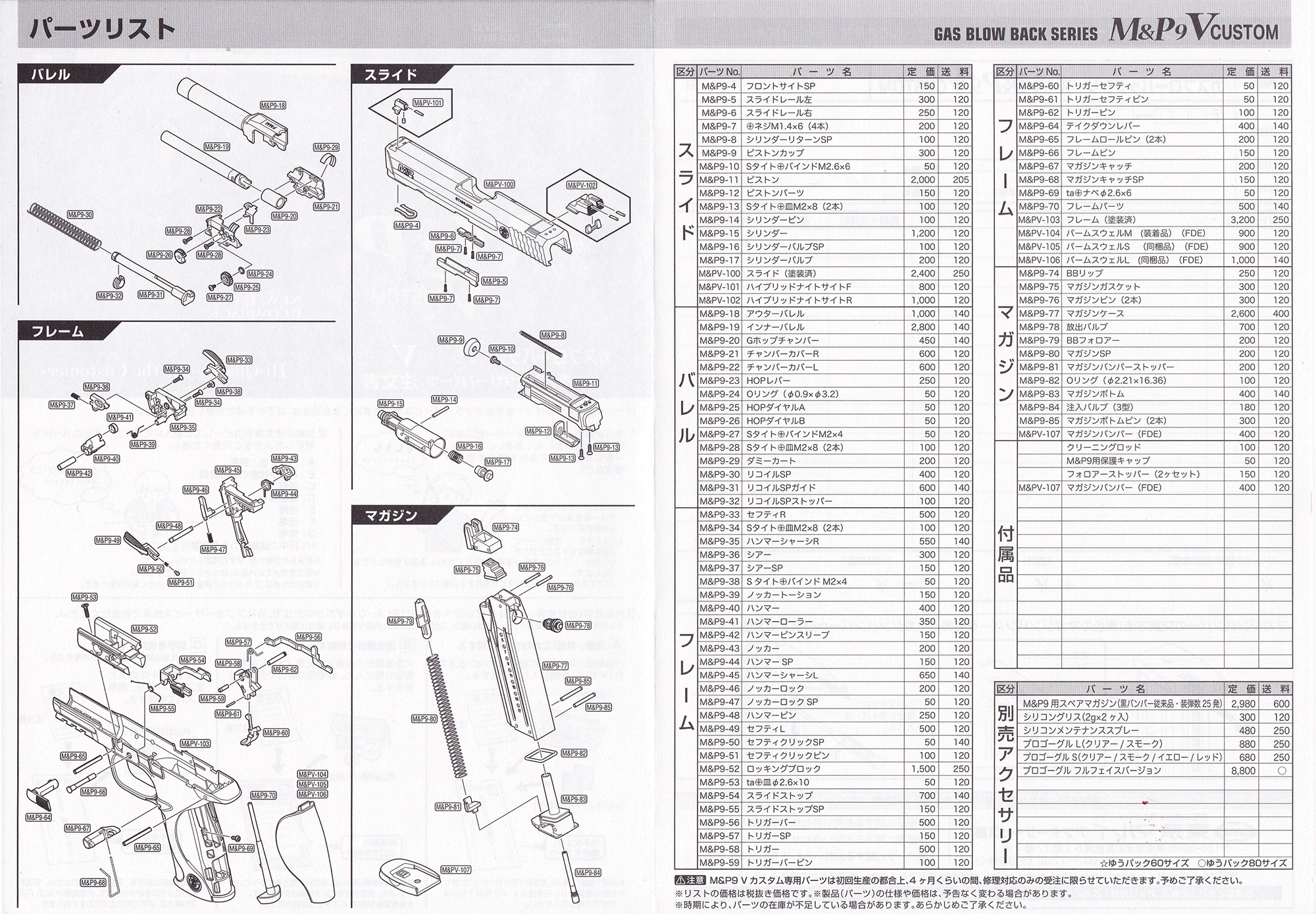 東京マルイ ガスガン S&W M&P9 Vカスタム スペック & 弾速データ