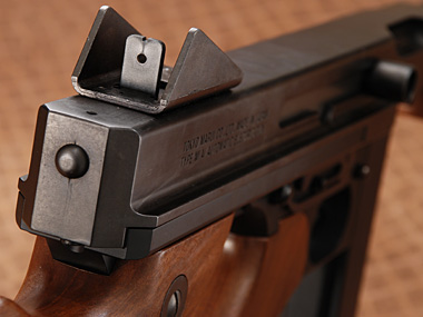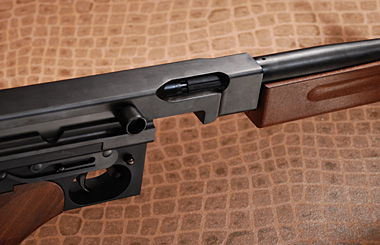 トンプソンM1A1 エジェクションポート実銃では45口径のカートリッジが排出されるエジェクションポート。意外に小さく見える。