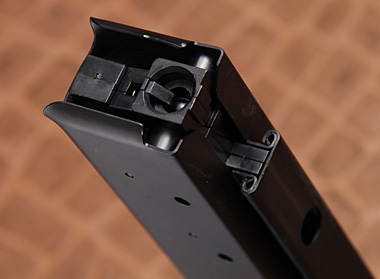 実銃のマガジンリップ形状を模したリアルなデザイン。スチールプレスのアウターシェルで質感と重量感もリアルだ。