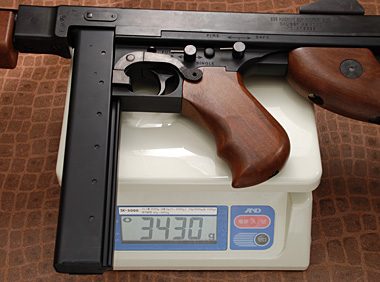 トンプソンM1A1 イメージカットグリップを握った感触はちょっと太い。幅は普通なのだが、縦が長い感じだ。