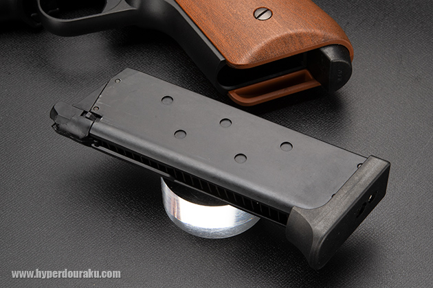 銃の底部、シングルカラムマガジンには金属製の大型マグバンパーが装着され、装弾数も増加していた。