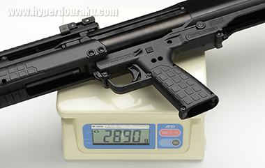 空のガスタンクを装着しての実測重量は2,890g。これにショットシェルが加わればほぼメーカー公称値になるだろう。