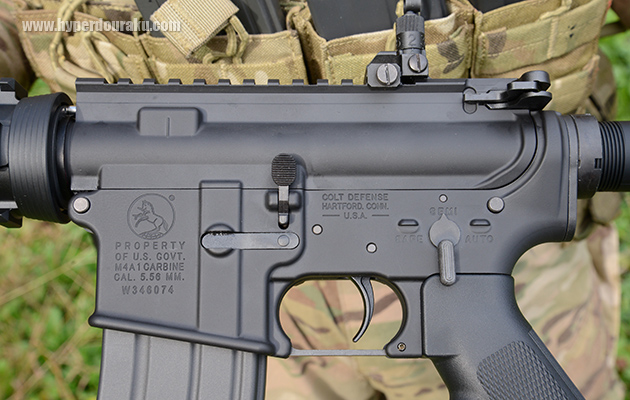 なお、実銃のコルト製M4A1カービンのレシーバー表面処理はハードアノダイズドであり、セラコート™が使用されているというワケではなく、実銃にも使用されることがあるミルスペックのガンコーティング剤ということだ。