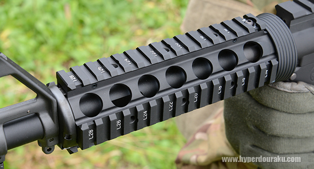 レールハンドガードの寸法はリアルサイズ。レール下面内側にはアルミ製ヒートシンクも実銃同様に再現されている。
