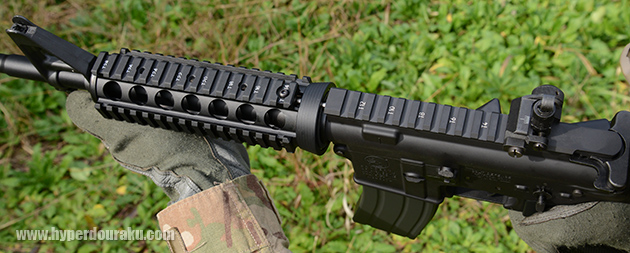 RASはアルミ削り出しで高精度な印象。トップレールのレールの深さは実測で2.86mm程度でやや浅め。また、このRAS、フロント側のハンドガードキャップの固定が甘く、左右に若干カタカタと音がする。