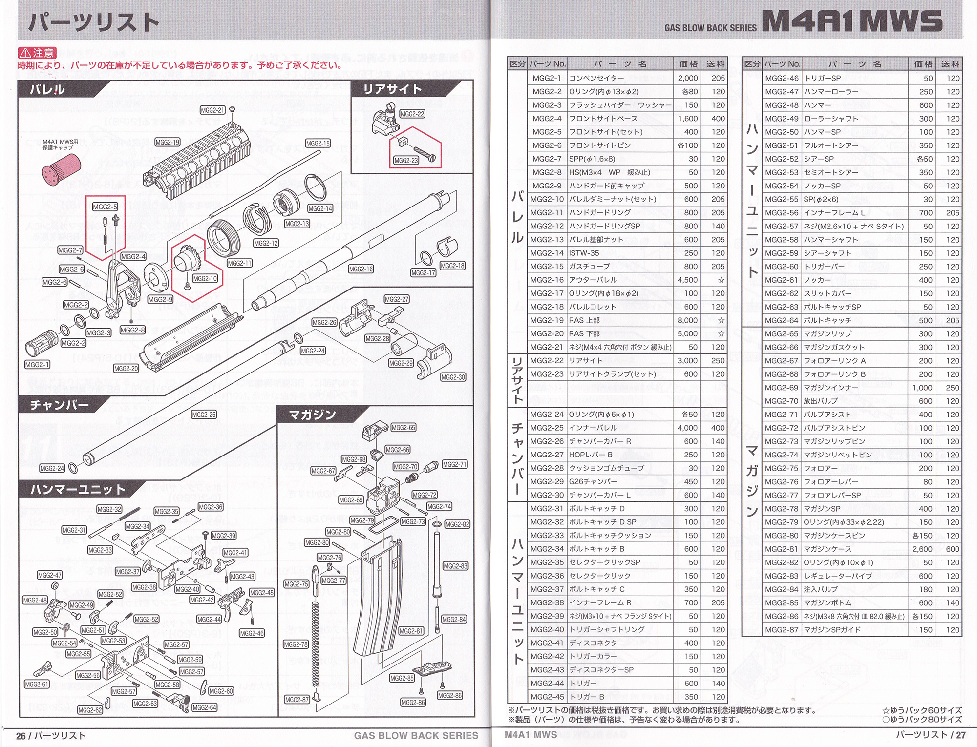 ボルトフォアードアシストノブボルトフォアードアシストノブは実銃同様に可動、ボルトを押し出す機能もある。しかしガスブロとしてはボルトを傷付けたり、ノズルが破損する可能性があるので絶対に使用するな、との注意書きがある。絶対に押すなよ(笑)。
