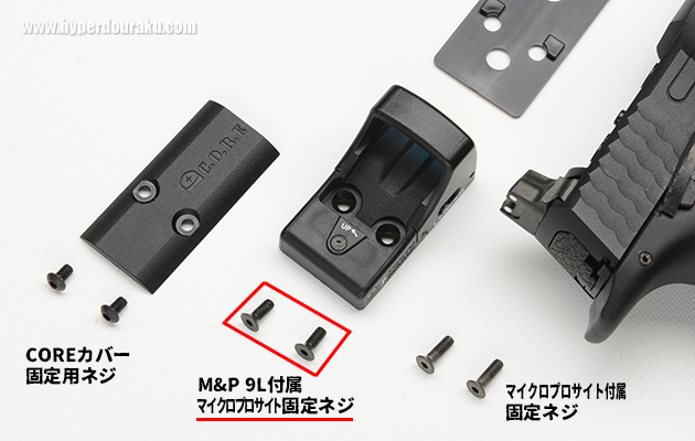 なお、マイクロプロサイトの固定にはM&P 9L PCポーテッドに付属する専用の短いネジを使用する。
