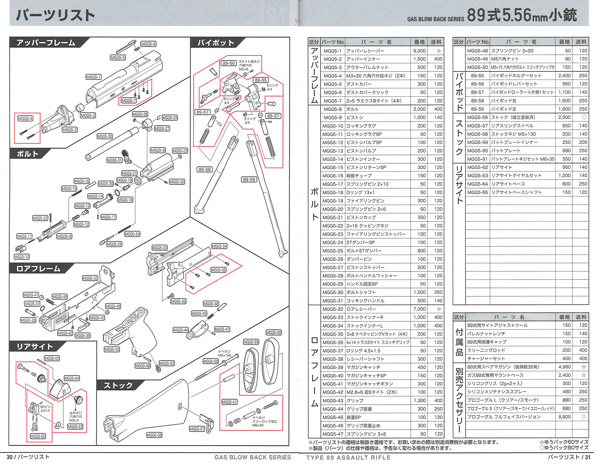 レシーバーは亜鉛ダイキャスト製。レシーバーの刻印は電動ガンとは異なり、現行型で採用される89Rの刻印に変更された。また左面セレクターも標準装備。