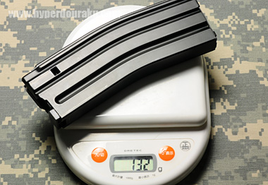 マガジンはアルミプレス製で軽量。実測重量は132g。実銃のマガジンとほぼ同じ重さ。