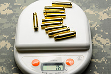 プラ製のカートリッジ。金色のメッキが施される。カートの重量は10個で16g、つまりひとつ約1.6g。
