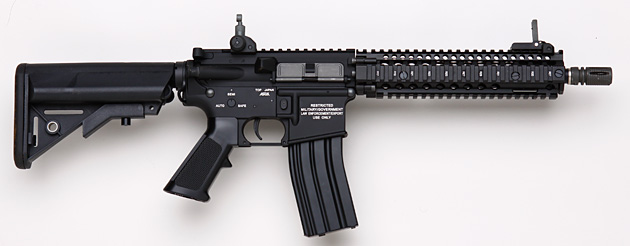 Mk.18 MOD1はネイビーシールズを始めとする米特殊部隊が採用するM4カービンをベースとしたCQB-R搭載モデルだ。CQB-R、つまり接近戦闘用のレシーバーで、取り回しに優れた10インチクラスのショートバレルを採用する。