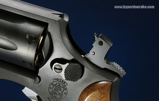 ハンマーが落ちた状態から撃つ、ダブルアクション、ハンマーを起こして撃つシングルアクションどちらでも射撃が可能です。とにかくハンマー、トリガーの動きが非常に滑らかです。それでいて、カチッとロックされ、ガタつくこともありません。