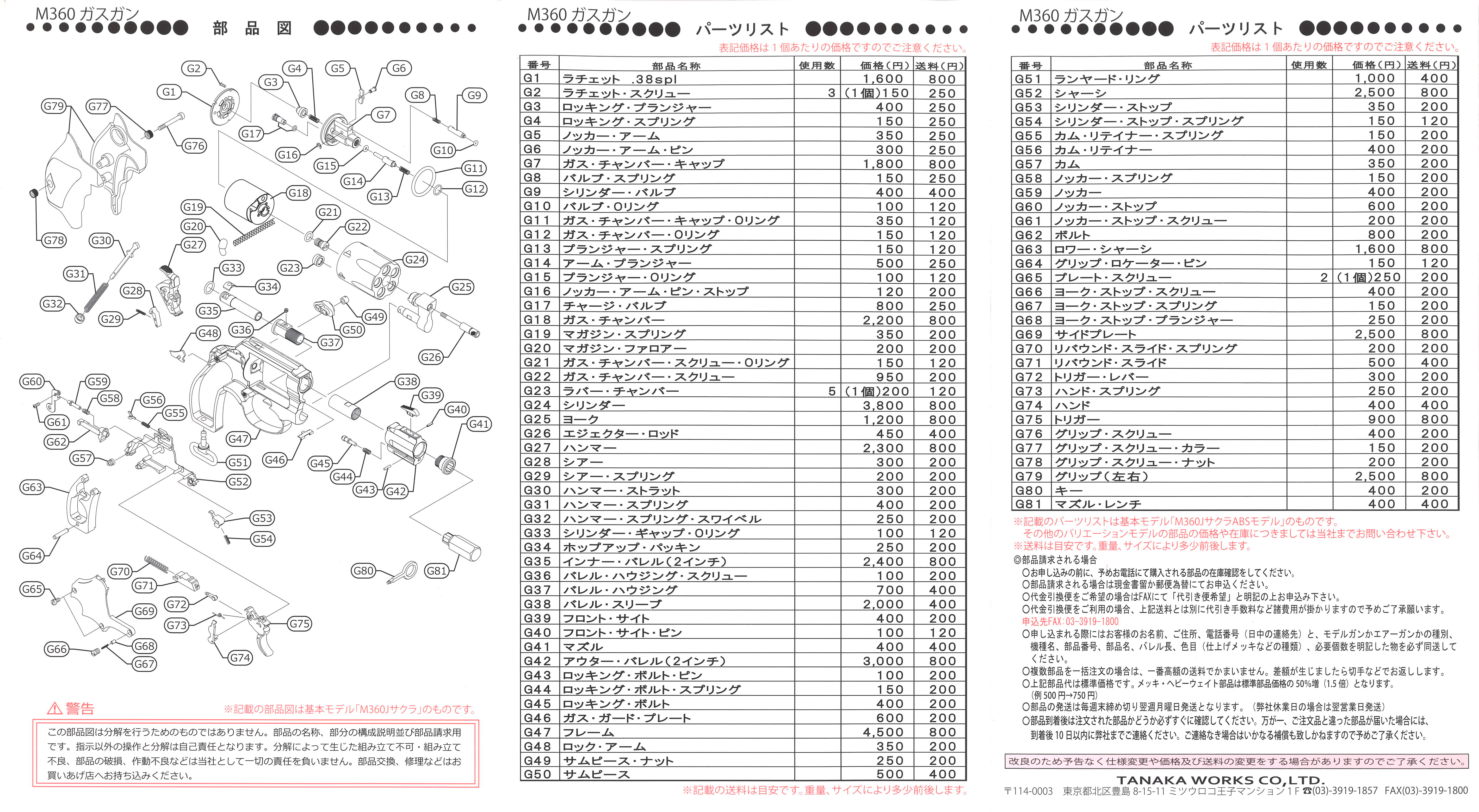 タナカ ワークス ガスガン S&W M360J "SAKURA" HW他