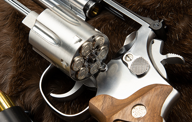 ステンレスシルバーの美しいメッキ、すらりと伸びた6インチバレルのバランスが絶妙に美しい。これは手にして眺めているだけでも楽しめる。カリフォルニア・ハイウェイ・パトロールのリボルバーということでポリスファンなど思い入れのある方にはたまらない一丁だろう。