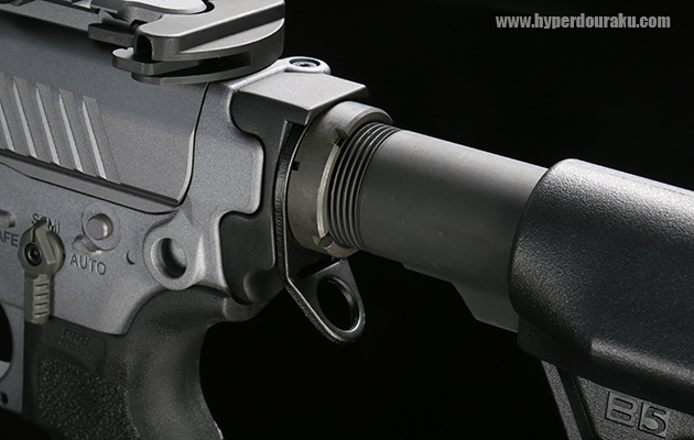 B5 Systems Bravoタイプのストックが標準装備です。ストックは3段階に伸縮します。