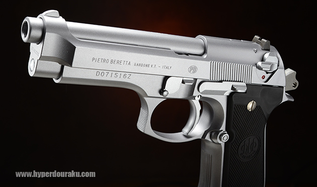 今回レビューするのはそんなベレッタ M92FS INOXをベースに、映画『ソルト』のポスタービジュアルからインスパイアされ、その名を冠したモデルだ。