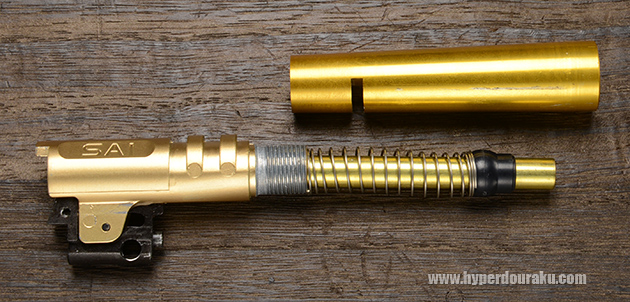 通常分解。アウターバレルはバレル部がアルミ製、チャンバー部が亜鉛ダイキャスト製の2ピース構造。