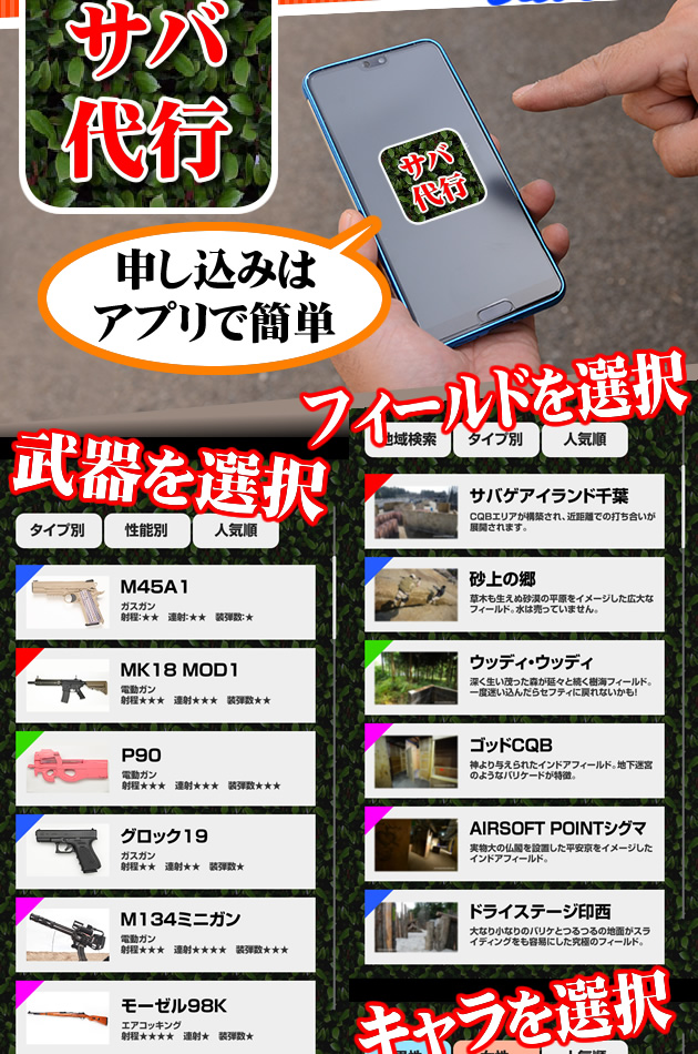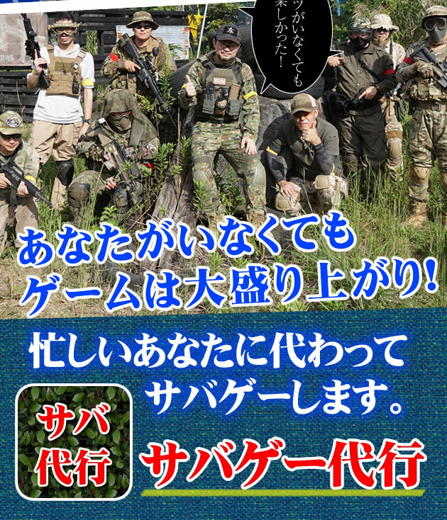 忙しいあなたの代わりに弊社派遣スタッフがサバゲーをプレーします。