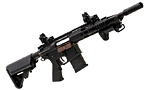 3~9倍のズームスコープとC-MOREサイトでスナイピングとCQBとを同時にこなし、タクティカルライトの装備で暗所戦闘にも対応するという全局面対応型のカスタムガンだが、こんな重装備が楽しめるのもM4 Guardianシリーズの魅力のひとつと言えるだろう。
