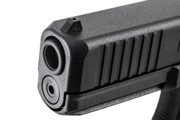 スムーズな動作を確保するため、マズルデバイス取り付け用のねじ切りは無く、Gen.5独自のクラウン(バレル先端の面取り)とライフリングのモールドが施されている。