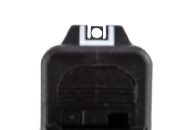 前後サイトは従来通りのデザインで、フロントにはホワイトダットが、リアには凹状のホワイトラインが、それぞれ塗装によって再現されている。