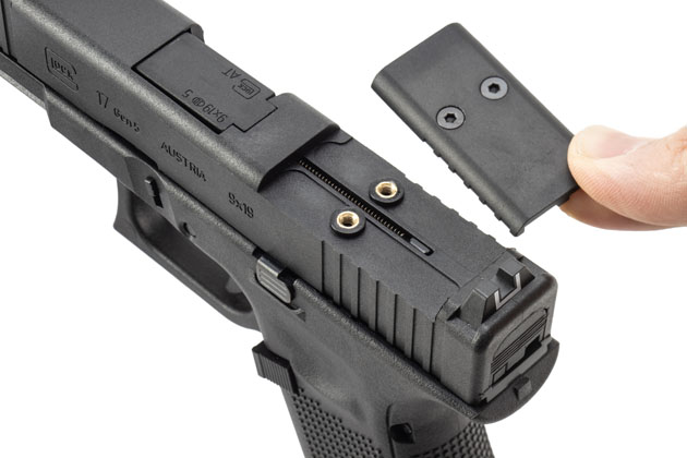 カバーを外した後、付属のMOSプレートを固定し、対応したマイクロダットサイトを専用のネジで取り付けるといった手順になる。