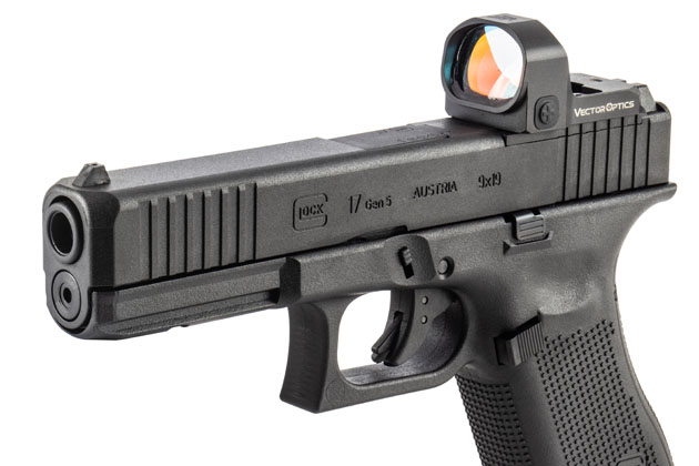 G17はそのスライドがMOS仕様となっており、各種マイクロダットサイトを実銃と同じ位置に搭載出来る。