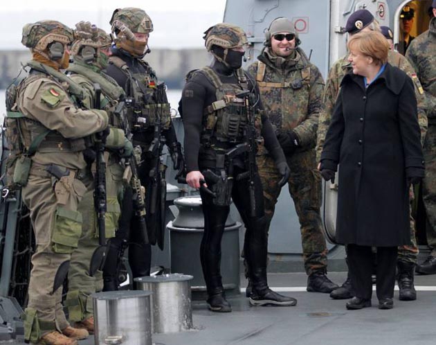 メルケル首相の視察を受けるKampfschwimmerの精鋭たち。