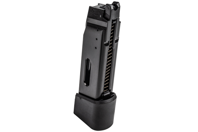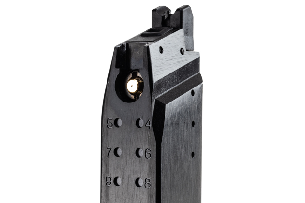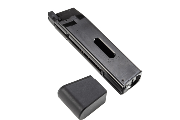 もはやお馴染みとなった感のあるCO2マガジンだが、同じ9mm口径のBM-9用マガジンとの互換性は無いBH-USP専用設計で、装弾数は26発となっている。