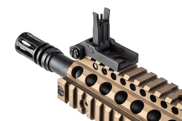 MK18とM4A1はKACタイプのフォールディングフロントサイトサイトを装備しているが、M4A1FSPは、ハンドガード上面の開口部から、M4/M16でお馴染みの三角形フロントサイトベースが突き出した格好となっており、このデザインがFSP(フロントサイトポスト)という名称の由来となっている。