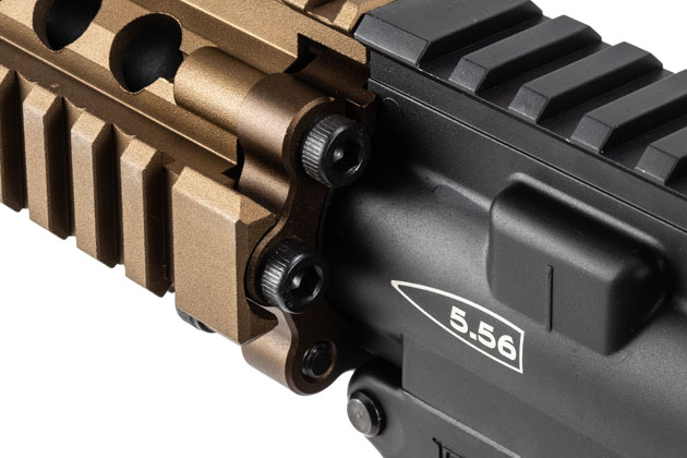 ハンドガードとレシーバーの結合部も、実銃通り左右3本ずつ合計6本のボルトで前後からガッチリ固定されており、外観のリアルさと同時に、どのように扱ってもびくともしない剛性の高さを実現している。無論、3機種すべてが同じ構造だ。