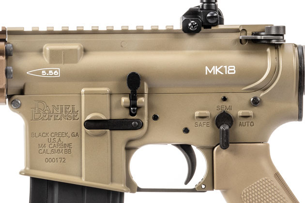 MK18は、電動ガスブロ問わず様々なメーカーから数多くリリースされている人気機種だが、今回はMod.1、Mod.0といったアメリカ特殊部隊向けのモデルではなく、Daniel Defense社製品としてのMK18がモデルアップされている。